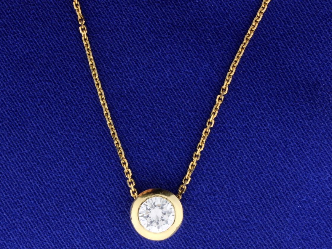 14K yellow gold, the pendant is 1/2 inch in diameter with a 2ct round CZ. 6.4g