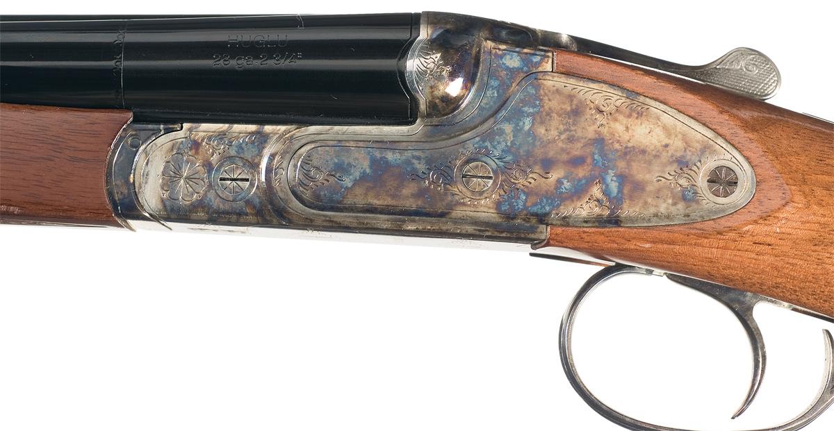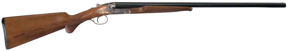 Condition: Excellent. The barrels retain all of the original blue finish with only light handling marks. The remaining parts retain 99% original case colors with a few minor scuffs and scratches on the right lock plate. The wood is also excellent with a few minor nicks and scratches, with sharp checkering. Mechanically excellent.