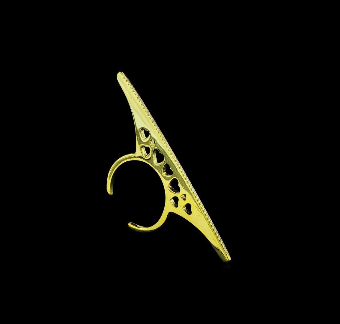 High end designer jewelry. CZ Single Line Bar Ring - Gold Plated. 14 K Gold Pltd- Silver925. Clear/ Gold. 8. Total Weight: 4.7 grams.