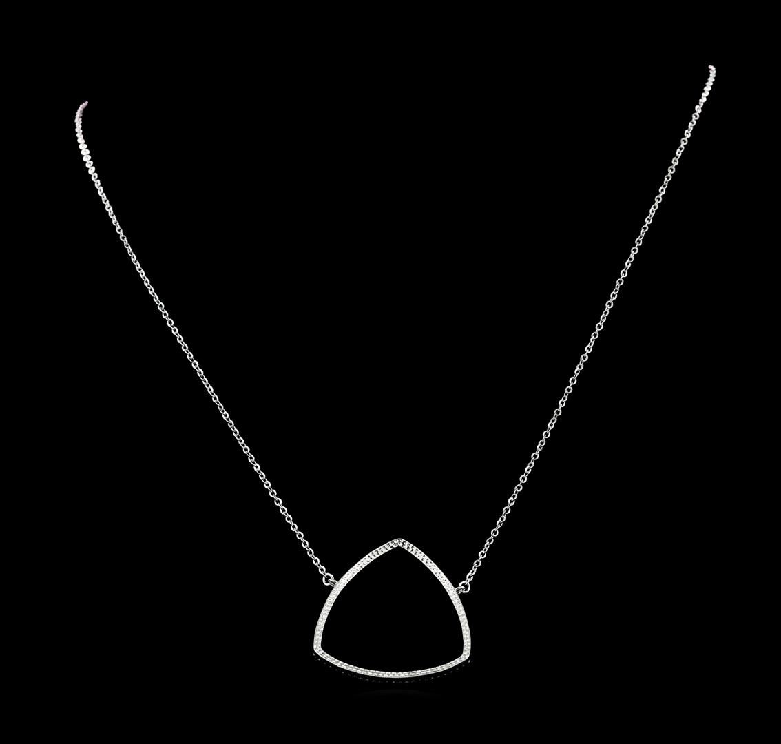 High end designer jewelry. CZ Triangle Pendant Necklace - 925 Silver. Silver925 Chain. Silver/ Clear. 16/3inches. Total Weight: 3.4 grams.