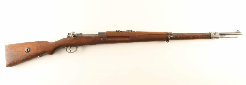 Czechoslovakian arsenal built bolt action service rifle chambered in 7.92x57mm Mauser, manufactured circa 1920's. Imported by C.A.I. of Georgia, V.T. with import marks on the right side of the barrel. Features a blued finish, 29.5" barrel, raised dovetailed inverted 'v' front sight, tangent rear sight graduated to 2,000 meters, two barrel bands, bayonet lug, cleaning rod, rounded trigger, straight bolt handle, three position safety on the rear of the bolt, internal 5 round box magazine, large ring receiver with integral stripper clip guide cuts, sling swivels, smooth wood handguard and near full-length semi-pistol grip shoulder stock with bolt disassembly disk & smooth metal buttplate. Rifle exhibits little remaining finish with the majority of the metal surfaces displaying an aged brown patina. Action is smooth, the bore is dark and the wood stocks are near good with a 2.5" hairline crack on the top of the wrist & small losses Condition is NRA Fair. ***C&R Firearm***