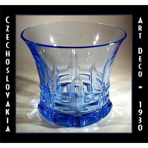 <tr><td>Title:CZECH ART DECO AQUA CUT GLASS VASE</td></tr>