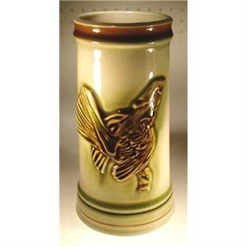 Lovely Czech Art pottery beer stein. The Grouse is raised in relief on light cream color glazed surface. The beer stein is in excellent condition with no chips, cracks, crazing or repairs. Dimension : 8"H, circa 1940-50's. The bottom is signed - Made in Czechoslovakia - Ditmar Urbach (Teplitz) logo mark and incised number 2196. See identical stein with Polar bear under separate listing.
