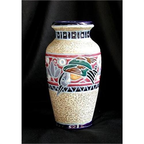 CZECH * Amphora Hummingbird Vase, Circa 1930's Tepliz Base Stamped. Highly Detailed Enamel Work on Textured Sufaces, White Porcelain Interior. A Superb ! Abosultely Mint Vase. No Chips, Wear, Hairlines or Rim Nicks. Aprox. 7.5 x 5. Quite Exceedingly Rare to Find This Piece in Such Fine Original Condition - Gorgeous Pastel Enameld Colors. Hummingbird Relief on Multi Pattern Motif with Florals and Fluted Neck. Simply Beautiful ! From The Finest of European Vaulted Collections. Secure Insured Parcel Shipping. DESIREABLE QUALITY PRIZED SHOWPIECE AS ORIGINAL * See The Collection. Go Antiques Live Auctions JULY 2006
