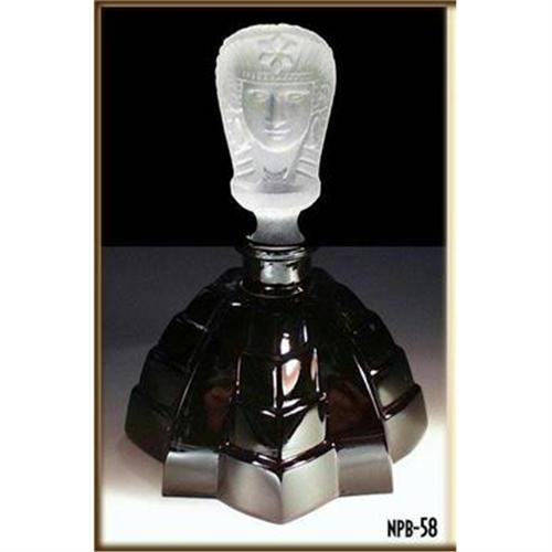 If you are REALLY interested in this item, please note that for Ebay Live Auction only bids at or above $100 will be successful and meet our reserve. The discovery of King Tut's tomb in 1922 again focused attention on ancient Egypt. The dazzling treasures captured fancy of the world and inspired clothing designs and jewelry. It had profound influence on many designers of Czech glass and pottery. This perfume bottle is fine example of the endless creations in 1930's Czechoslovakia. Pyramid shape black glass bottle with satin finish crystal "Cleopatra/Sphinx" stopper is breathtaking... The color glass bottles range from the easy to find to extremely rare. Clear crystal is the least expensive, most common and easiest to find. The production of the Vaseline and opaque colors is the most expensive and most difficult to find. Rarity of colors : "1" easiest to find (Clear Crystal), "2" common, "3" intermediate, "4" scarce (opaque black), "5" rare (Vaseline, Malachite), "6" very rare (opaque blue-Lapis), "7" hardest to find (Turquoise-Aqua). This opaque Black glass is rated "4" - Scarce. Dimension : 4 inches high, Boheme, Czech Republic. Please note that in some cases photo sizes are automatically reduced (Ebay Live Auctions), so if you want to see full size or detailed pictures, please email us ()
