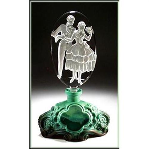 If you are REALLY interested in this item, please note that for Ebay Live Auction only bids at or above $150 will be successful and meet our reserve. This is outstanding malachite glass perfume bottle... Stopper was acquired among others in 1994 - unfinished from the old stock at the company, which was producing original Czechoslovakian perfume bottles since 1920's. This was a year before we discovered the original 1920-30's molds. Couple years later we fitted this stopper with malachite glass bottle, which is also from 1930's mold, but made in 1996. I don't believe this stopper is being re-produced. So, if you like it, don't miss out on this one, it won't be available in the future...this is our only piece. Size : 7-1/2" high. MINT condition. Please note that in some cases photo sizes are automatically reduced, so if you want to see full size or detailed pictures, please email us ().