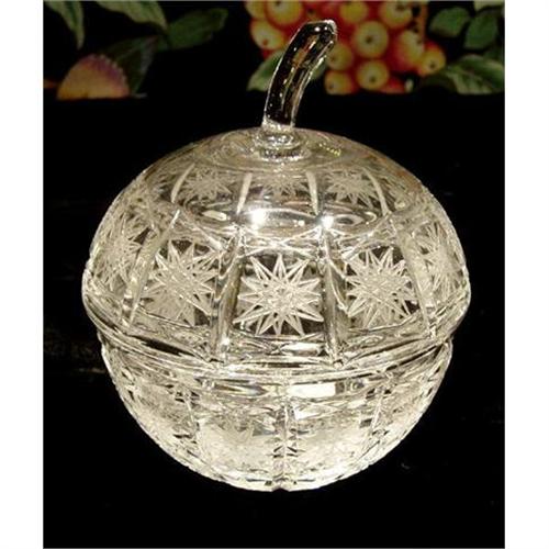 Beautiful Czech circa 1950-60 vintage hand cut crystal apple bowl. Until recently, this type of Czech Art glass was "forgotten" in American publications on the subject. Please refer to the book of "Collectible Bohemian Glass 1915-45, Vol. II" by Robert & Deborah Truitt, which is an excellent source of information for Collectors in this field. Pages 6 -31 cover cut glass . In the Encyclopedia of Glass, Phoebe Phillips gives high praise to the cut glass of Christian Dorflinger when she writes "... it was considered at one time to make the best crystal in the United States, good enough to match that of all but the best Bohemian (Czech) craftsmen". This pattern is called "Queens Lace". Condition is wonderful with no damage. Dimension : 4.75"H x 4" in diameter., Made in Czechoslovakia circa 1950-60