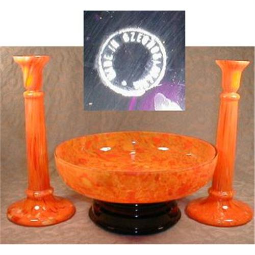 <tr><td>Title:CZECH Console SET - Bowl & Candlesticks -ORANGE</td></tr>