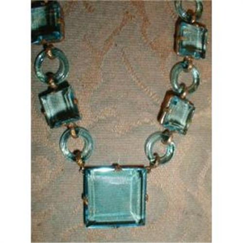 <tr><td>Title:CZECH Deco NECKLACE Large BLUE Stones VINTAGE</td></tr>