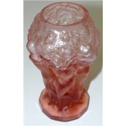 Czechoslovakian figural art glass vase of nudes. Marked on bottom R. Lalique-France. 5" H