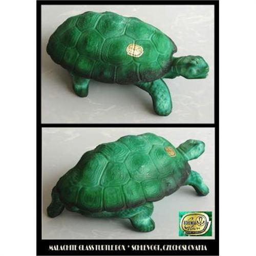 <tr><td>Title:CZECH MALACHITE COLOR GLASS TURTLE POWDER BOX</td></tr>
