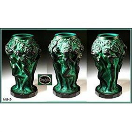 </font></strong>Beautiful Art Deco malachite glass vase with females and grapes in relief are near the perfection. Made by Riedel Glass for Schlevogt's 1930's INGRID line. Henry Schlevogt took over Hoffman (his father in law" company and worked for several years to develop type of glass that had depth and richness of semi-precious stone like Jade, Malachite and Lapis. In 1934 INGRID line glass was unveiled. It was very successful to compete with Lalique glass in international markets. Signed "INGRID" on black/silver foil label. Although this vase is listed in the book "MOSER - Artistry in glass (pg.90, plate 154 / $350-500), Moser was most likely the exporter of this article after the WWII, but never a manufacturer. Mint condition, no chips, cracks or repairs. Dimension : 5"H, Czechoslovakia c. 1950's. Please note, this is NOT current piece made in Czech Republic. Please note that in some cases photo sizes are automatically reduced, so if you want to see full size or detailed pictures, please email us. Please note that for Ebay Live Auctions only bids at or over $190.00 will be successful and meet our reserve. </font>