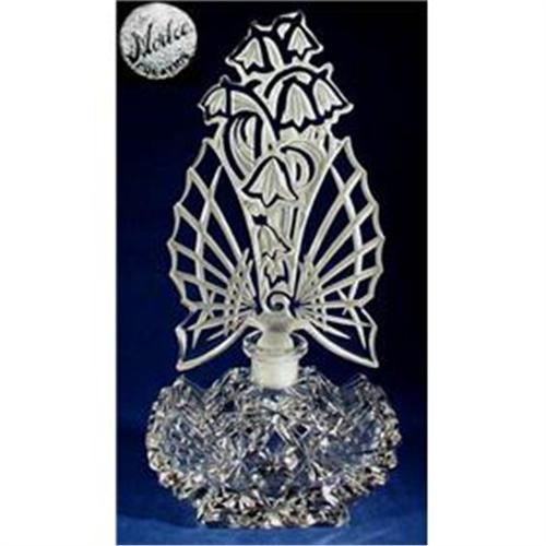If you are REALLY interested in this item, please note that for Ebay Live Auction only bids at or above $400 will be successful and meet our reserve. Beautiful, very intricately cut crystal perfume bottle with a large "KISSING BUTTERFLIES" intaglio acid etched stopper. This unusually large perfume "GEM" is in excellent condition with no chips, cracks or repairs. Dimension : 8"H. Unsigned, but definitely Czechoslovakian of the 1930's vintage. Silver foil label with black letters "A Morlee Creation" is on the base. This perfume bottle (in green) is pictured in J. North's Czechoslovakian Perfume Bottles and Boudoir Accessories, Revised Edition and valued $1650.00 - see page 134, #854. Although our perfume is in crystal - it is offered at a BARGAIN price. This fabulous piece is NOT being reproduced. For Ebay Live Auctions pictures are reduced in the size. If you want to see larger, more detailed photo, please email us