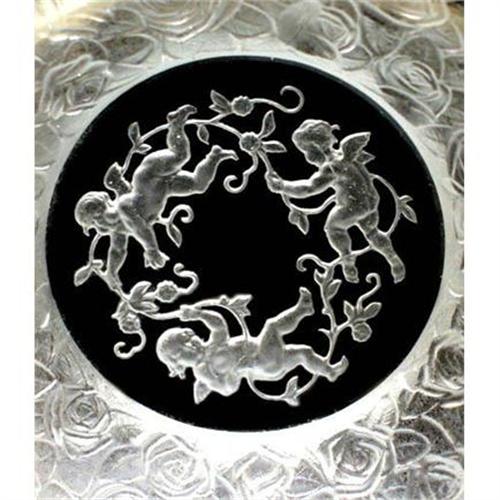 Lovely Czech Art glass bowl from the pre WWII era.  3 adorable intaglio cherubs are surrounded by band of roses in relief.  The top is perimeter band is cut with 16 facets.  We are not certain, but believe this bowl was part of the very successful INGRID line, made by Schlevogt in 1930's.  Excellent condition, no chips, cracks or repairs.  Dimension : 5 inches in diameter, Czechoslovakia circa 1930's.  Please note that photo does not capture the beauty of this piece, which eye so easily perceives.  Please note that for Ebay Live Auctions only bids at or over $80.00 will be successful and meet our reserve.