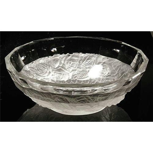 Please note that for eBay Live Auctions only bids at or above $190 will be successful and will meet our reserve!! Lovely Czech Art glass bowl from the pre WWII era. 3 adorable intaglio cherubs are surrounded by band of roses in relief. The top is perimeter band is cut with 16 facets. We are not certain, but believe this bowl was part of the very successful INGRID line, made by Schlevogt in 1930's. Excellent condition, no chips, cracks or repairs. Dimension : 9 inches in diameter, Czechoslovakia circa 1930's. Please note that photo does not capture the beauty of this piece, which eye so easily perceives.