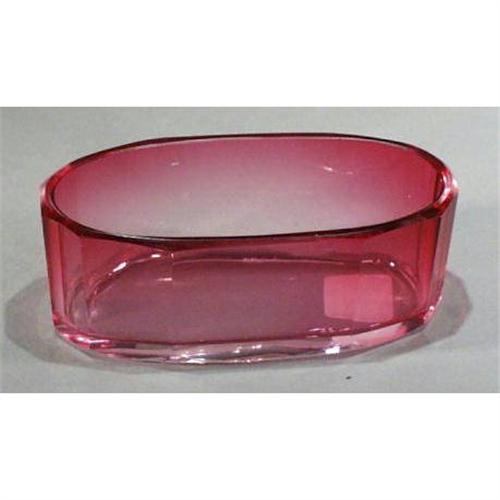 </font></strong>Beautiful Czech Vintage clear to cranberry glass shaded pin tray. Paneled, cut and polished crystal. Excellent condition, no chips or cracks. This pin tray is a part of 5 piece vanity set. Each piece of the vanity set is under separate listing. Size : 4"L x 1"H, Czechoslovakia circa 1920's.</font>