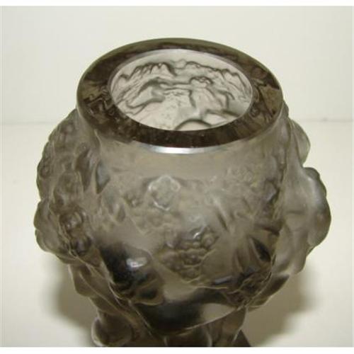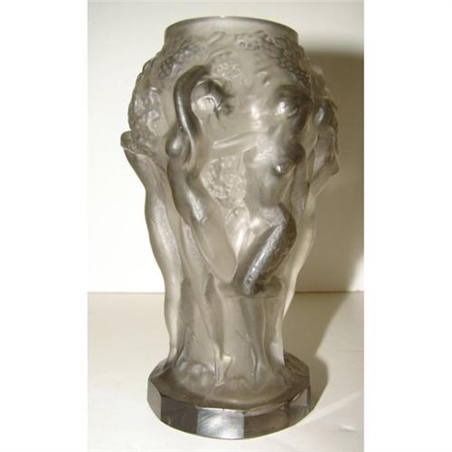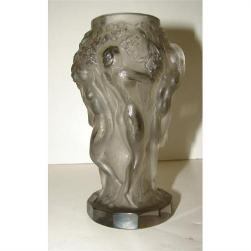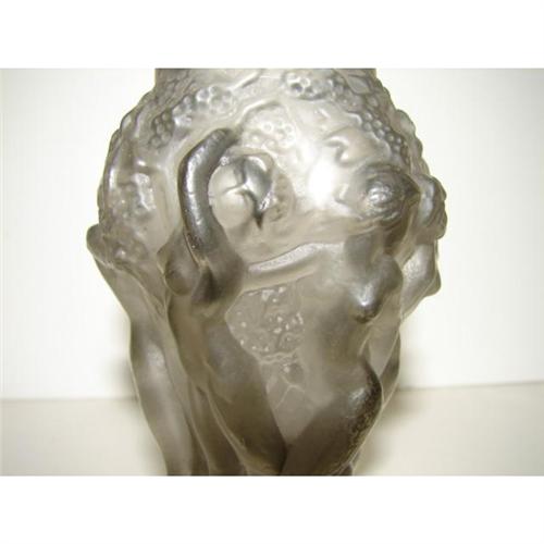 CZECHOSLOVAKIAN GLASS CABINET VASE. Clear glass vase with relief form decoration featuring nude females around entire body. No mark. 5” H
