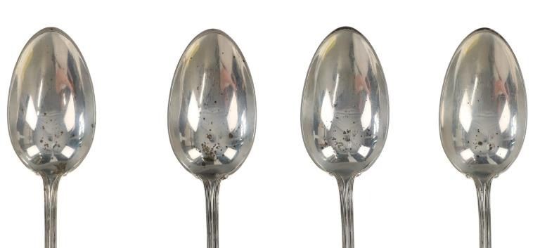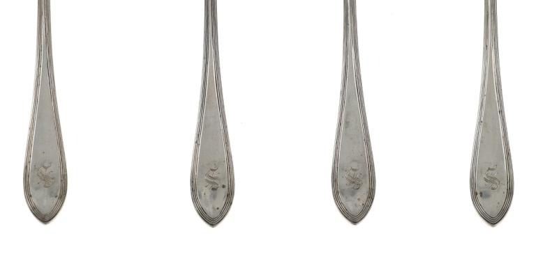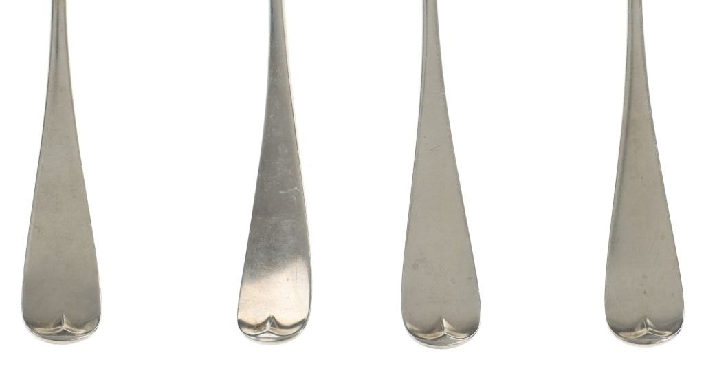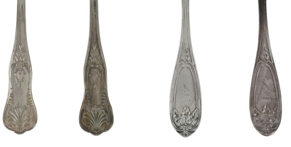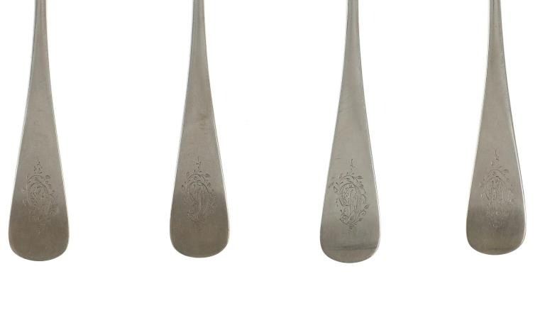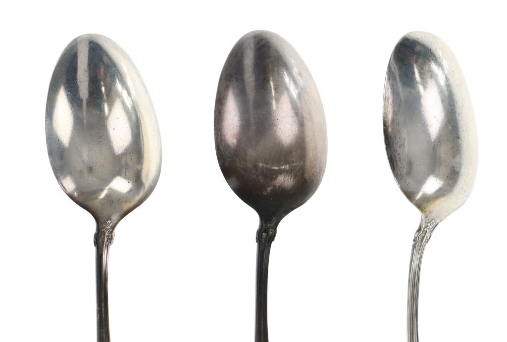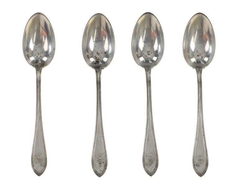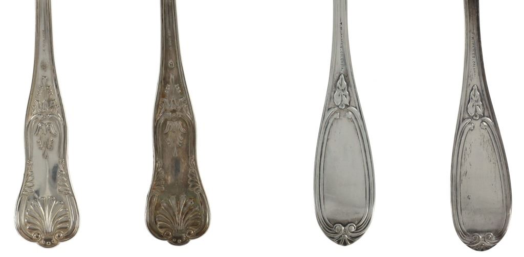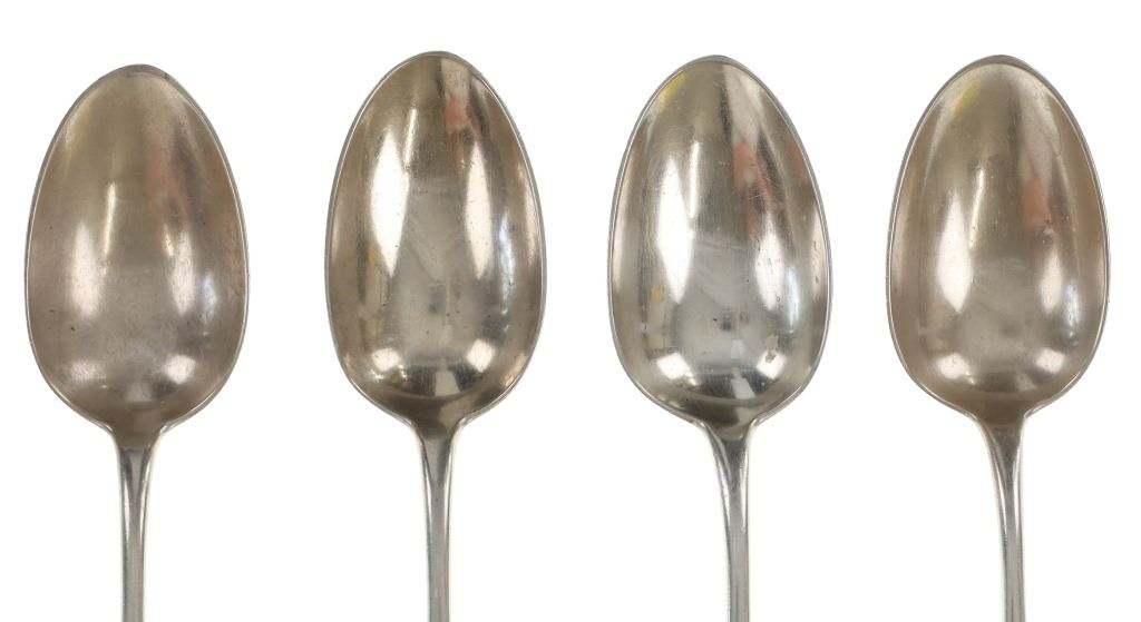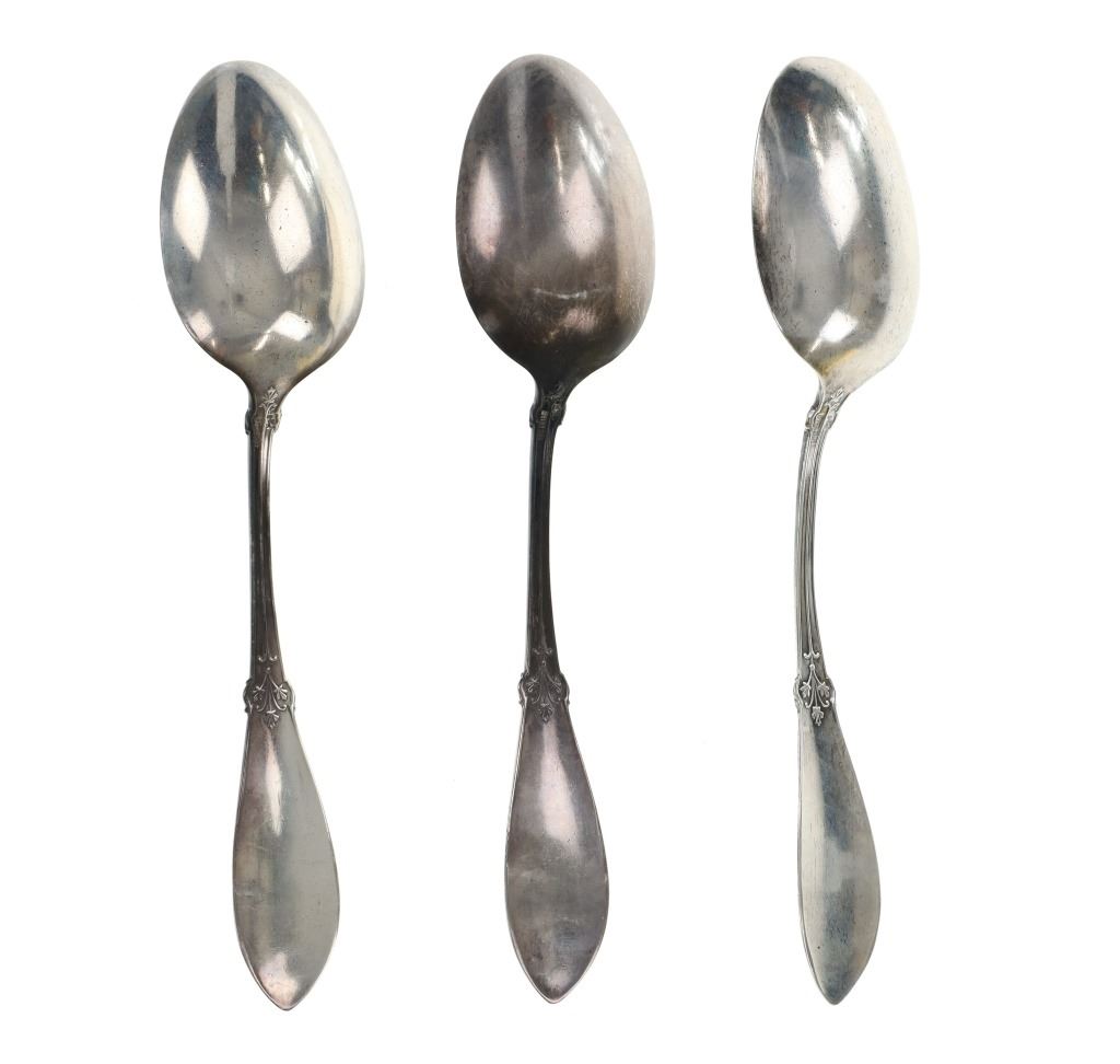 For your consideration are nineteen large, sterling spoons from various makers circa 1840-1970s. The first set of spoons in this collection were made by F. S. Thompson circa 1870-1890s in Belgium. The spoons show a polished sterling construction with engravings on the top of the handles. The bottom of the necks show a Belgium stamp as well as the makers stamp reading, "Sterling F. S. Thompson". The next set of spoons are two made by J. H. James circa 1910-1930s. The two spoons show a simple design on the neck of the spoon with initials on the top of the handle reading, "MF". The bottom of the neck also shows a simple design with leaves extruding onto the bottom of the bowl. On the neck it reads, "J. H. Thompson, Columbia". The next spoon in this lot was made by P. A. Lie Jewelers in 1904 and is .830 sterling. The spoon shows an embossed design on the outer edge of the handle white the top of the handle reads, "Augustine". The bottom of the handle reads, "P.A. Lie 83CS / 28-4-1904".The next set of three spoons were made in Holland circa 1900-1920s. The spoons shows ornate floral designs on the handles and a large bowl. The back of the necks show a simple design and feature Holland stamps and "Sterling" reading on the neck. The tips of the bowls show some slight wear. The next two spoons in this collection are also a set and were made by the Italian silversmith company, Alessio Cesa & Company circa 1960-1970s. The spoons show a simple, yet elegant design on the top of the handle with stampings seen on the bottom of the neck. The stampings read, "ARG 800 X". The next set of four spoons show no makers mark but are stamped sterling on the back of the necks. The spoons shows a simple line design on the outer edge of the the neck with initials or a design on the top of the handle. The seventeenth spoon in this collection was made by Walter Pitkin in Hartford, Connecticut circa 1840-60s. He was a partner from 1830 to 1840 with John Pitkin, his brother, in East Hartford CT as J. O. & W. PITKIN. In 1840 John retired and Walter worked from 1840 to 1860 as a silversmith and jeweler in East Hartford CT after his brother's retirement, continuing the company until the factory was destroyed by fire. Walter passed away on September 12th, 1885 in Hartford, CT. The spoon shows a polished coin silver construction with no designs present. The top of the handle shows initials reading, "AD", while the bottom of the neck is stamped reading, "W. Pitkin / Root x Chaffee". The eighteenth spoon in this lot features a sterling construction but shows no makers marks. The spoon shows a small, simple stamped design on the top of the handle and the letter "F". The bottom of the neck shows a small stamp and reads, "Sterling". The final spoon in this collection was made by William A. Rogers circa 1910-1930s. The spoon features a silver plate construction and shows no designs on the spoon. the back of the neck shows stampings reading, "Wm. A. Rogers A1". The spoons in this collection show good condition overall with wear from their age and use over the years. The spoons show varying degrees of patinas but no signs of obvious damage are present. The spoons measure from 8 5/8" L x 1 13/16" W to 7 1/16" L x 1 7/16" W. The collective weight of the spoons is 1020.7 grams (1.02 kilograms).
