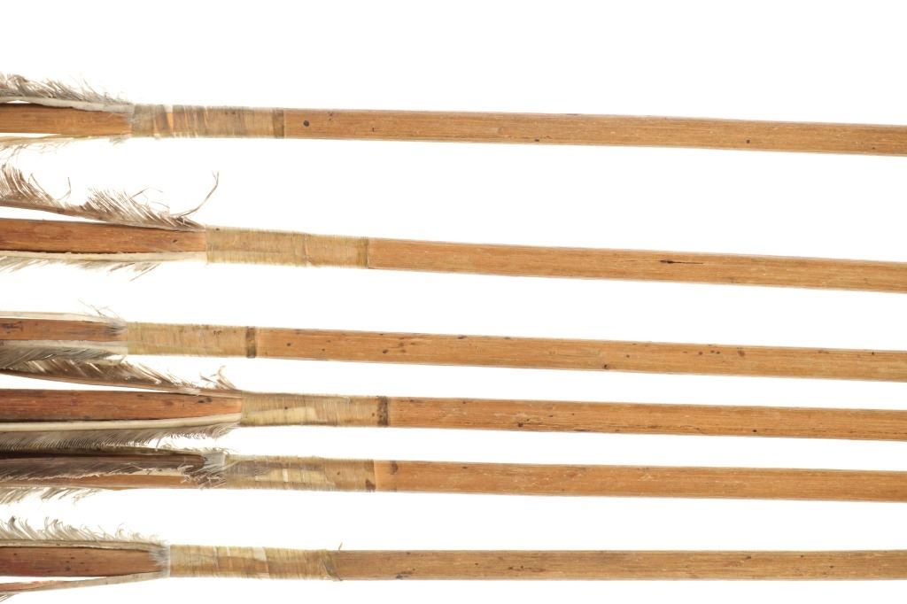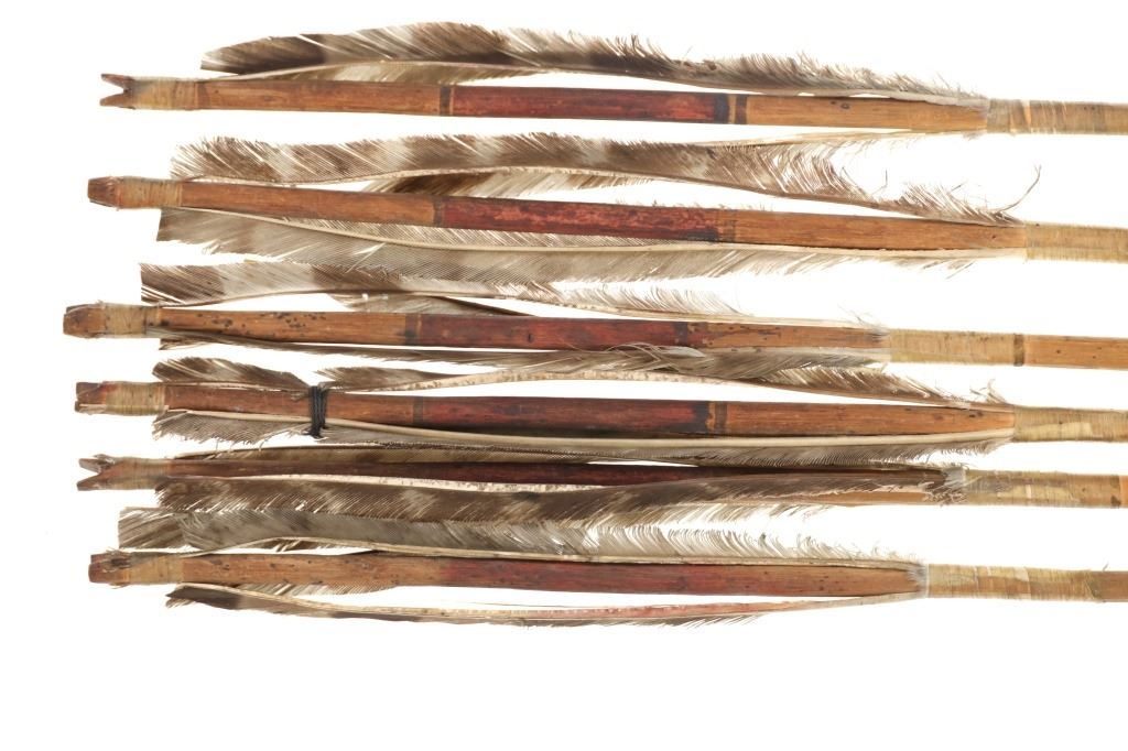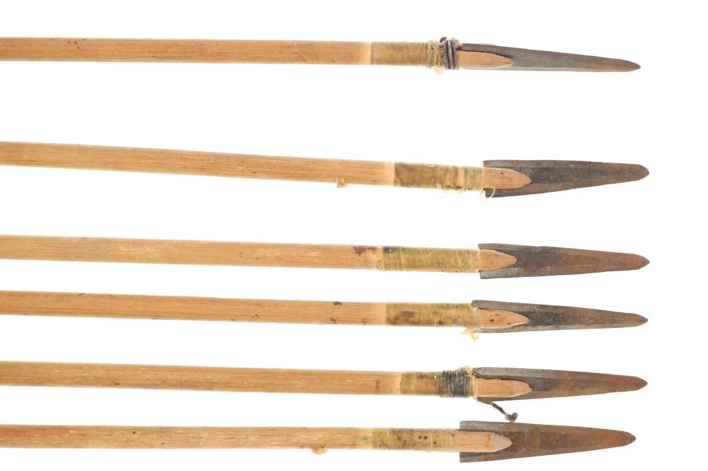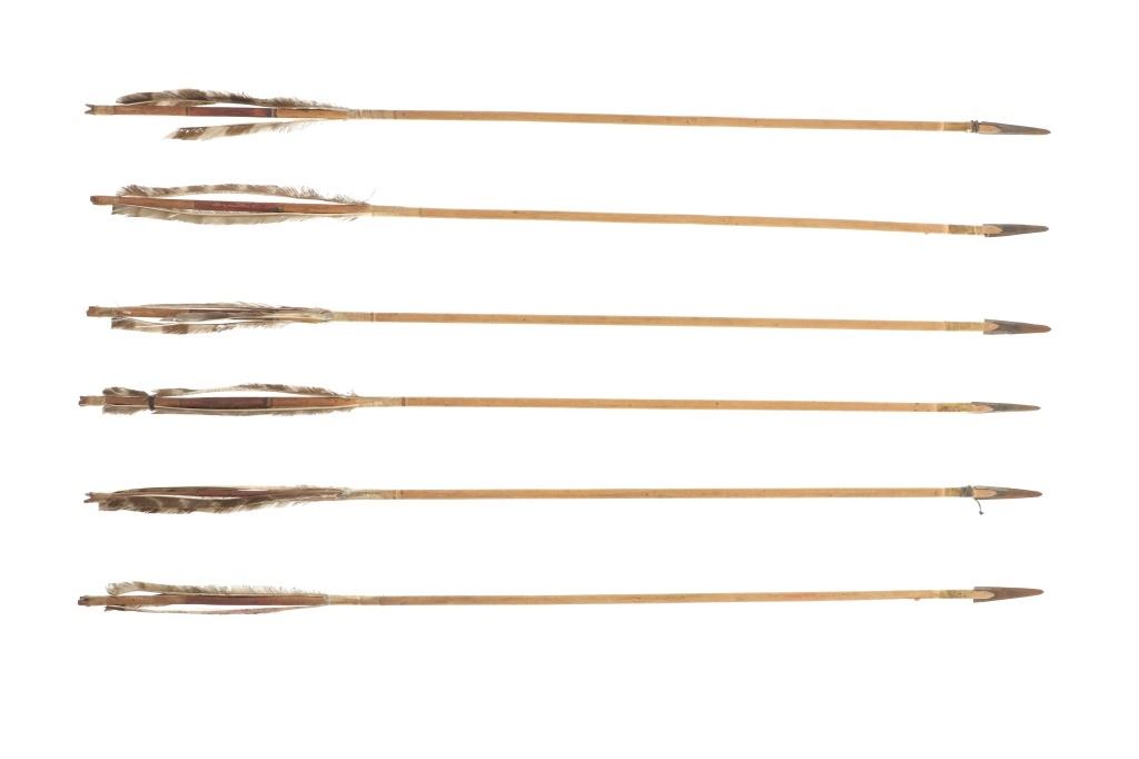 Provenance: From the Stephen Johnston collection formerly from Darby, Montana and Foster City, CA; Purchased for $35,000 many years ago from Mystic Warriors owners Bruce and Ilene Johnson. Measures 41-inches wide by 34-inches long. Arrows are approximately 24-inches long each.