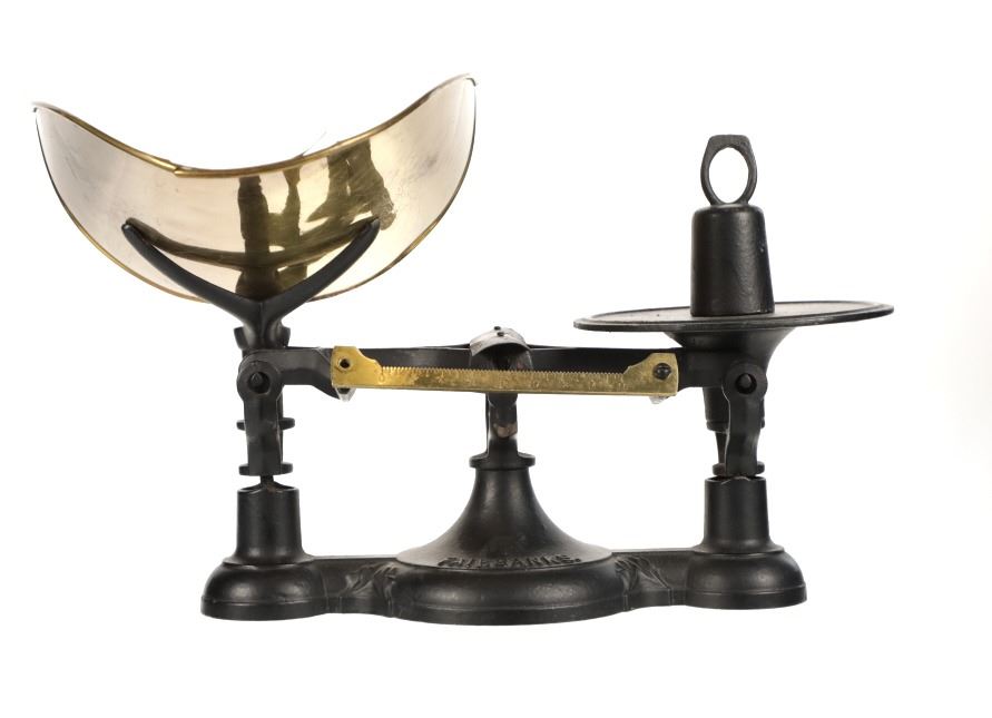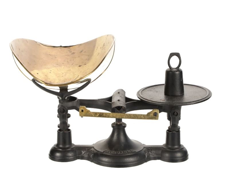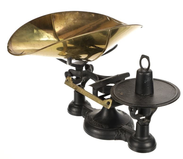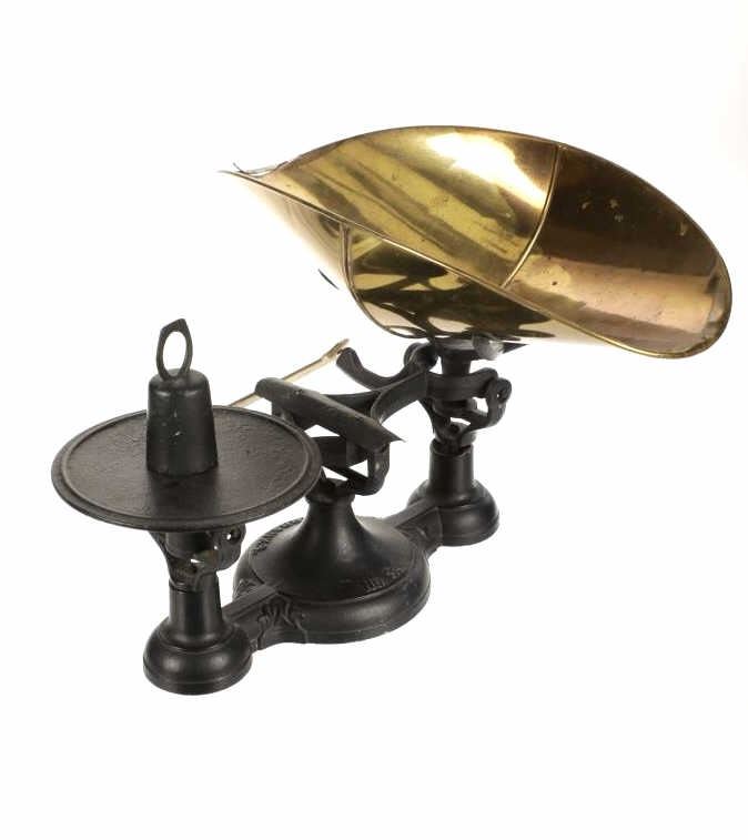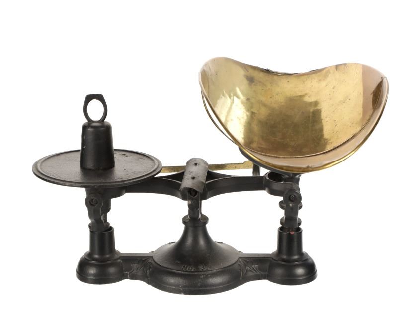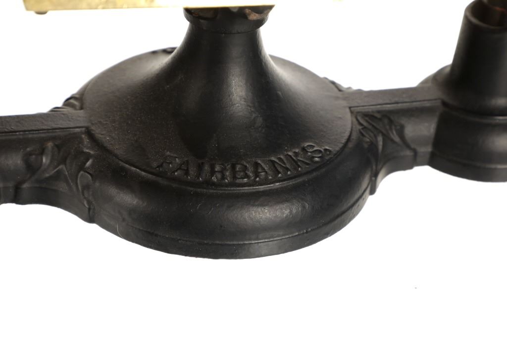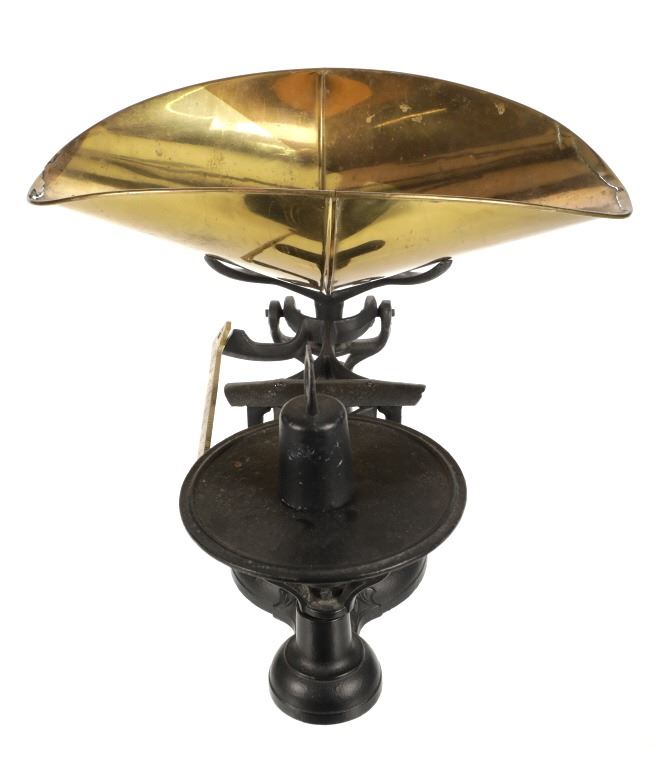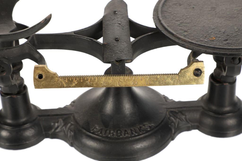 Featured in this lot is this Fairbanks No. 3 grocery store scale circa 1900-. The scale features a wonderfully and professionally crafted brass and cast iron construction and features a 16.68oz scale weight with a brass scale bucket and is considered a Balance Scale. The scale reads as follows: Fairbanks - No. 3. The condition of this scale is good and is missing one screw to the scale ruler and the bucket shows deterioration to the lips of the bucket but otherwise shows good overall condition. The measurements of this scale is 10" x 20 1/4" x 9".