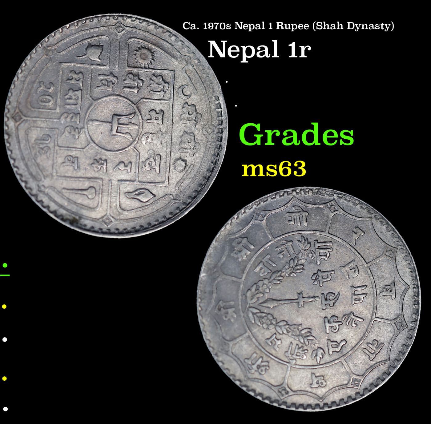 Ca. 1970s Nepal 1 Rupee (Shah Dynasty) Grades Select Unc.