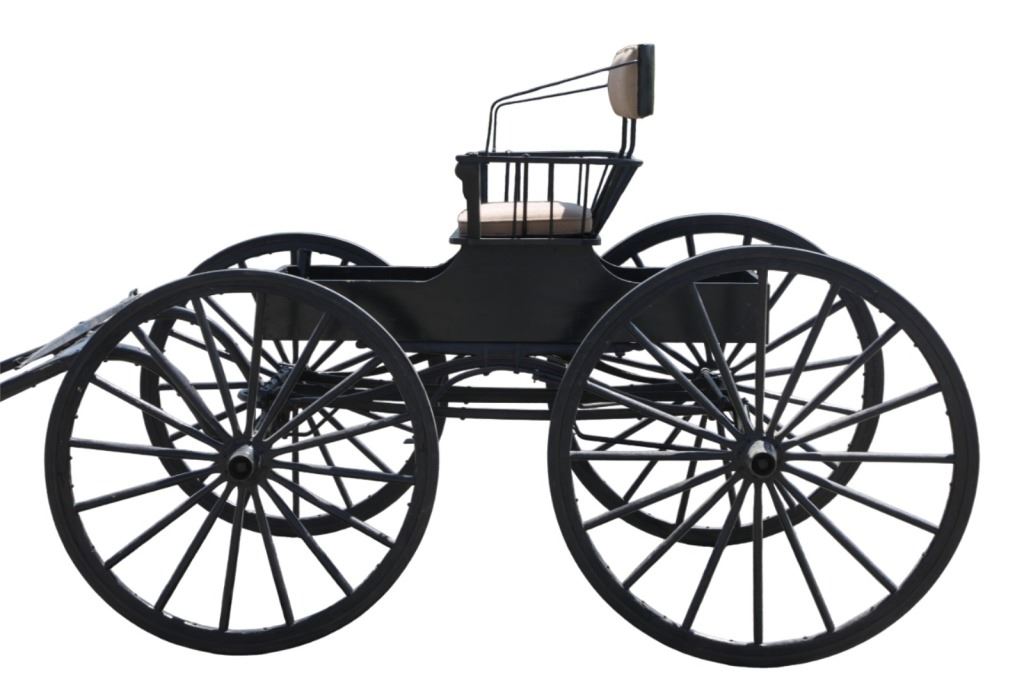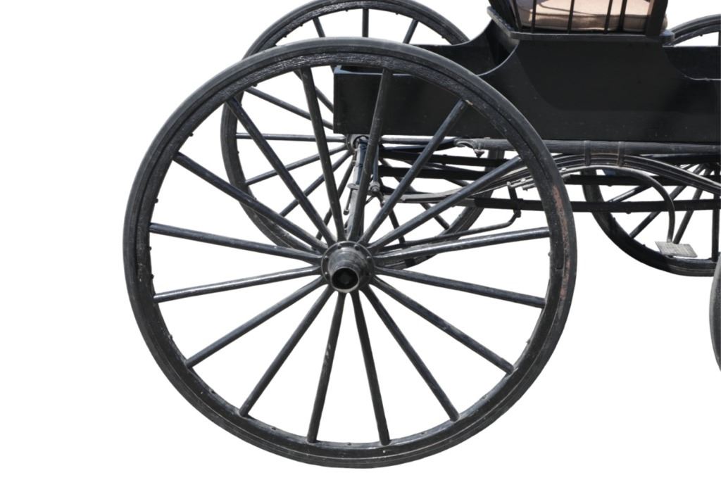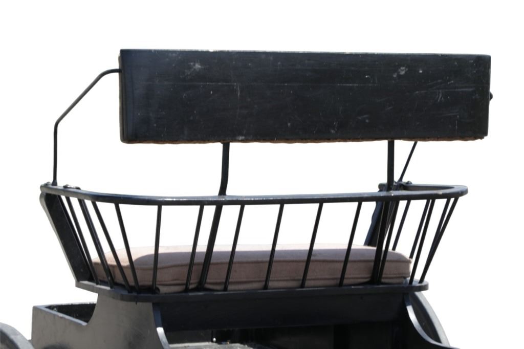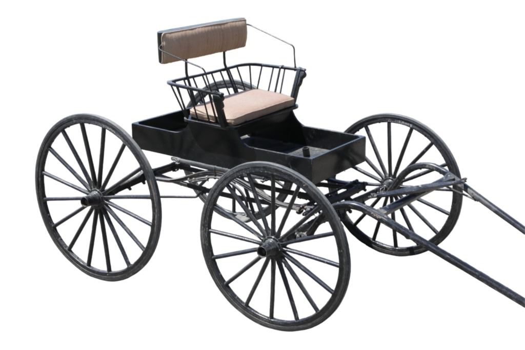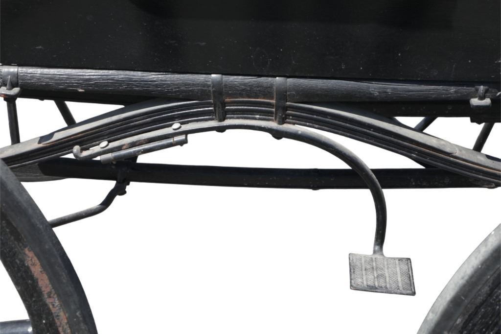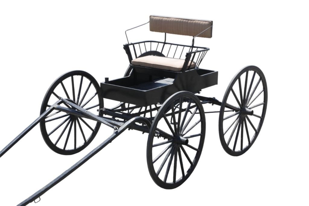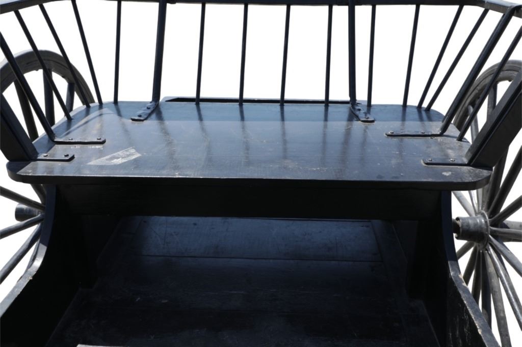 Featured in this lot is this iconic five spring streamline carriage circa 19th century with restoration. The carriage is wonderfully and professionally crafted wooden and iron construction that shows black lacquer finish and preserve layer to the wrought iron implements. This is a four wheel horse drawn streamline carriage made for speedy assembly and used for speedy transportation. The five spring design is iconic for being much smoother than carriages with less springs due to the condition of roads and made them much more desirable for transportation of goods and personnel. This carriage comes complete with the original yoke shown present with complete restoration consistent with the carriage itself, although the D-Clip shown is modern, the rest of the construction and implements would have been originally constructed in the 19th century when the carriage was made. The seat on top shows an upholstered and removable cushion with a seat back and some slight storage in the back for amenities or luggage. The carriage features step down sides with wrought iron framing parts possibly custom forge made due to the lack of a makers mark. The condition of this of this carriage is well preserved with some weathering wear consistent with age and use with the yoke showing similar condition but otherwise shows minimal oxidation to the springs or other implements of the carriage and shows a well preserved overall condition. The measurements of this carriage is 67" H x 172" L x 71 1/2 W. The collective weight of this carriage is