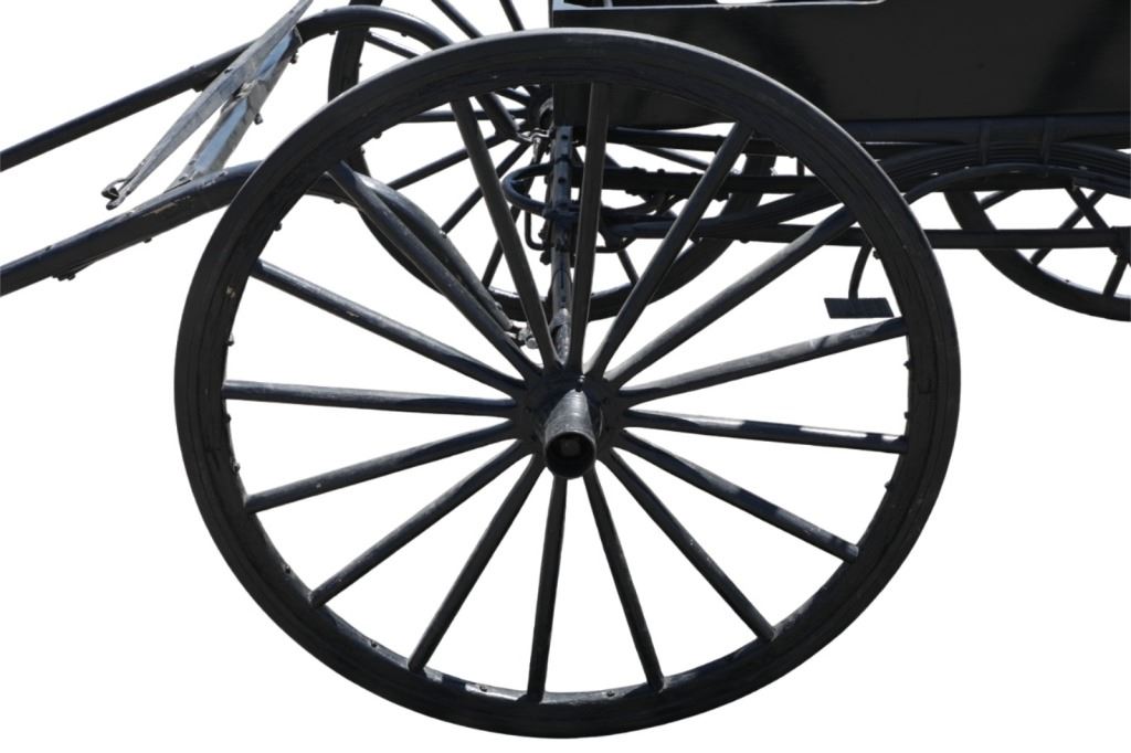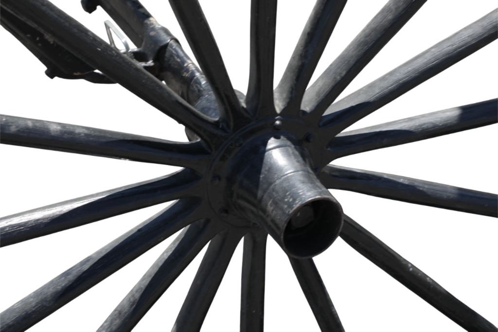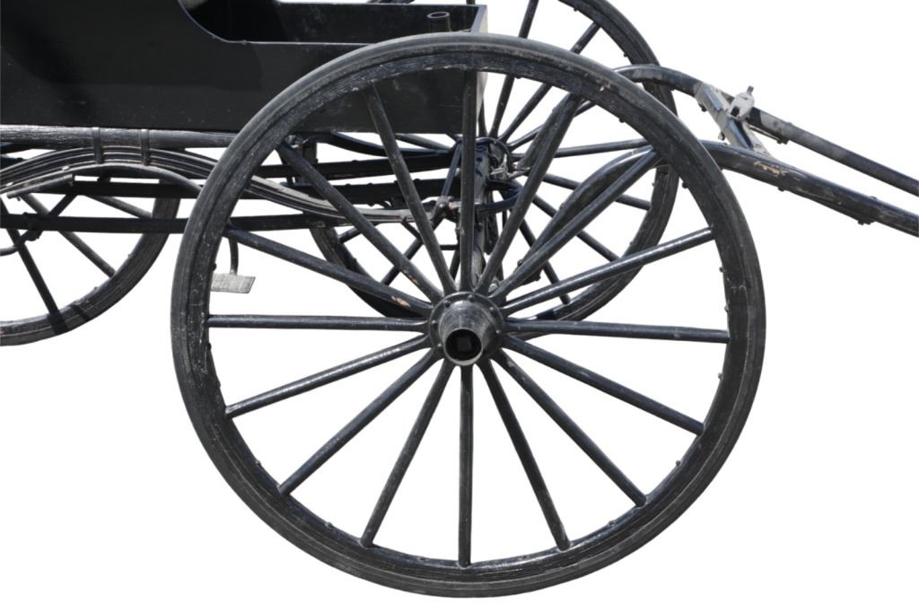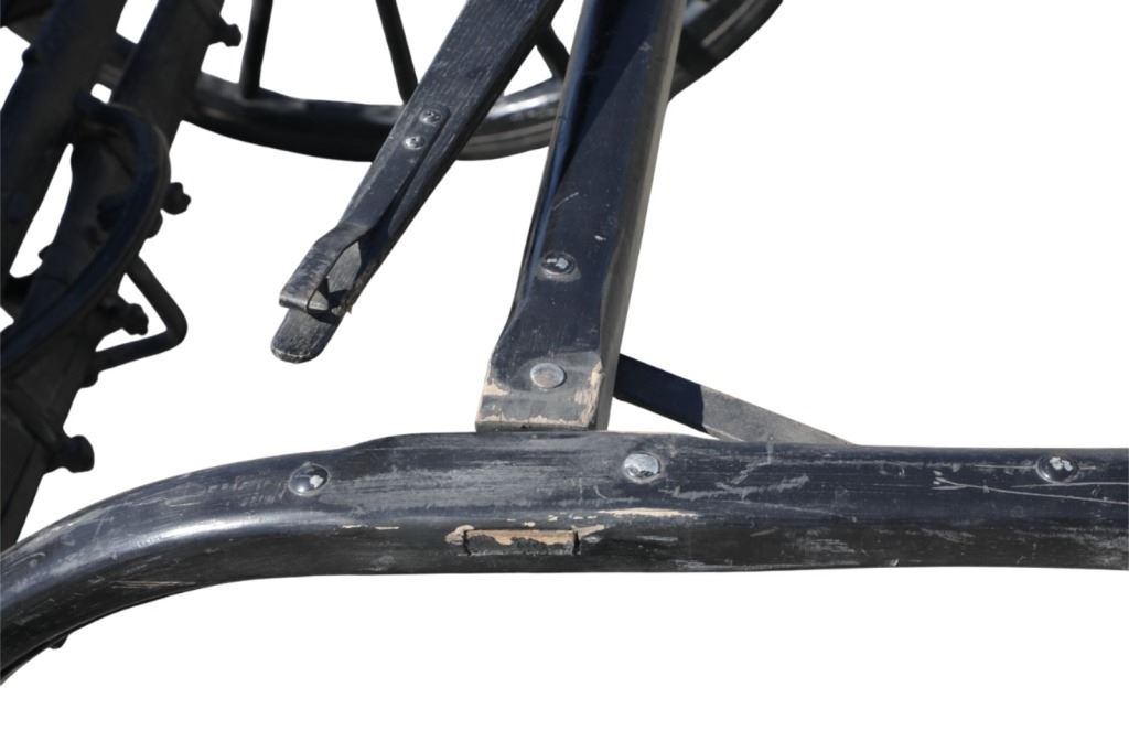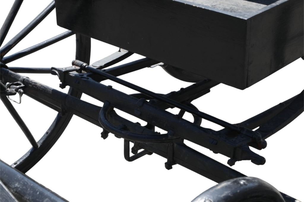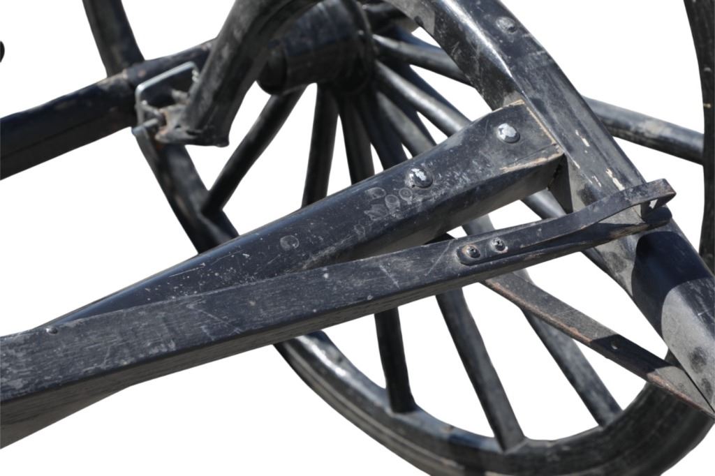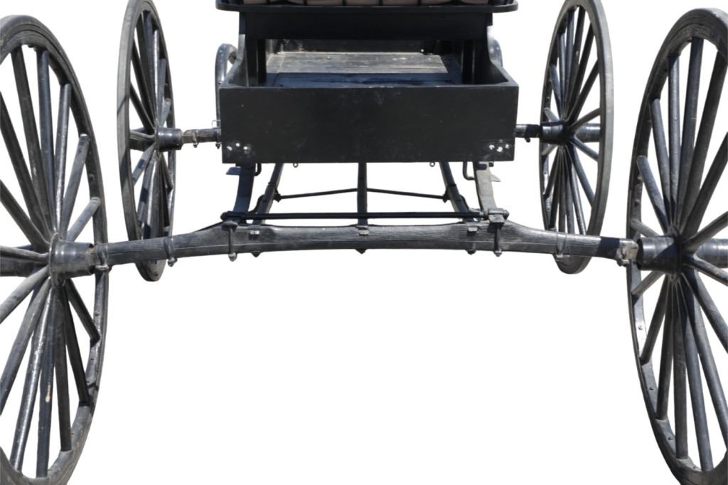 Featured in this lot is this iconic five spring streamline carriage circa 19th century with restoration. The carriage is wonderfully and professionally crafted wooden and iron construction that shows black lacquer finish and preserve layer to the wrought iron implements. This is a four wheel horse drawn streamline carriage made for speedy assembly and used for speedy transportation. The five spring design is iconic for being much smoother than carriages with less springs due to the condition of roads and made them much more desirable for transportation of goods and personnel. This carriage comes complete with the original yoke shown present with complete restoration consistent with the carriage itself, although the D-Clip shown is modern, the rest of the construction and implements would have been originally constructed in the 19th century when the carriage was made. The seat on top shows an upholstered and removable cushion with a seat back and some slight storage in the back for amenities or luggage. The carriage features step down sides with wrought iron framing parts possibly custom forge made due to the lack of a makers mark. The condition of this of this carriage is well preserved with some weathering wear consistent with age and use with the yoke showing similar condition but otherwise shows minimal oxidation to the springs or other implements of the carriage and shows a well preserved overall condition. The measurements of this carriage is 67" H x 172" L x 71 1/2 W. The collective weight of this carriage is
