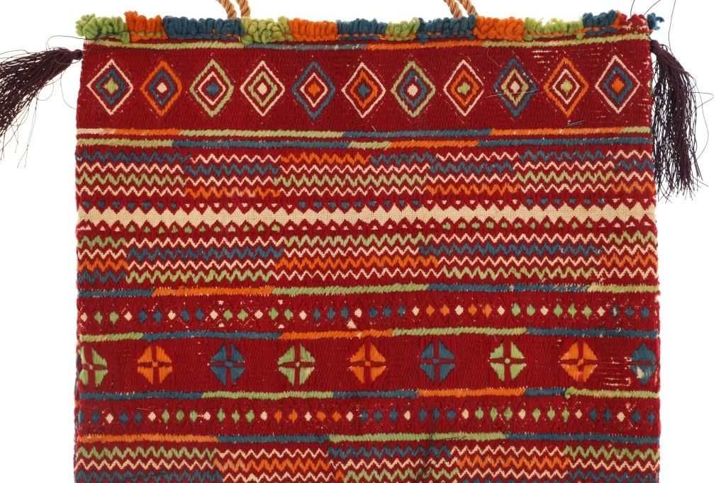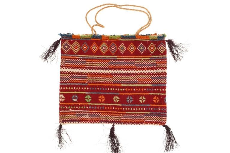 Featured in this lot is an Afghan Balauch Balisht bag circa early 20th century. The bag features a wonderfully and professionally crafted construction that shows a colorful design with layered weave to the bag and shows tassels on the corners. The coloration of the bag includes a deep red, light green, greenish blue, and orange. The overall condition of this Afghan Balisht bag is well preserved with no obvious signs of damage. The measurements of this bag are 10" x 11 3/4". The collective weight of this bag is 4oz.*