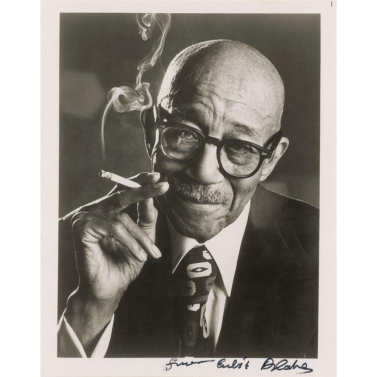 Two glossy 8 x 10 photos of Cab Calloway and Eubie Blake, signed in black felt tip by the legendary jazz musician pictured. In overall fine condition, with a few bends and creases to the Blake photo.