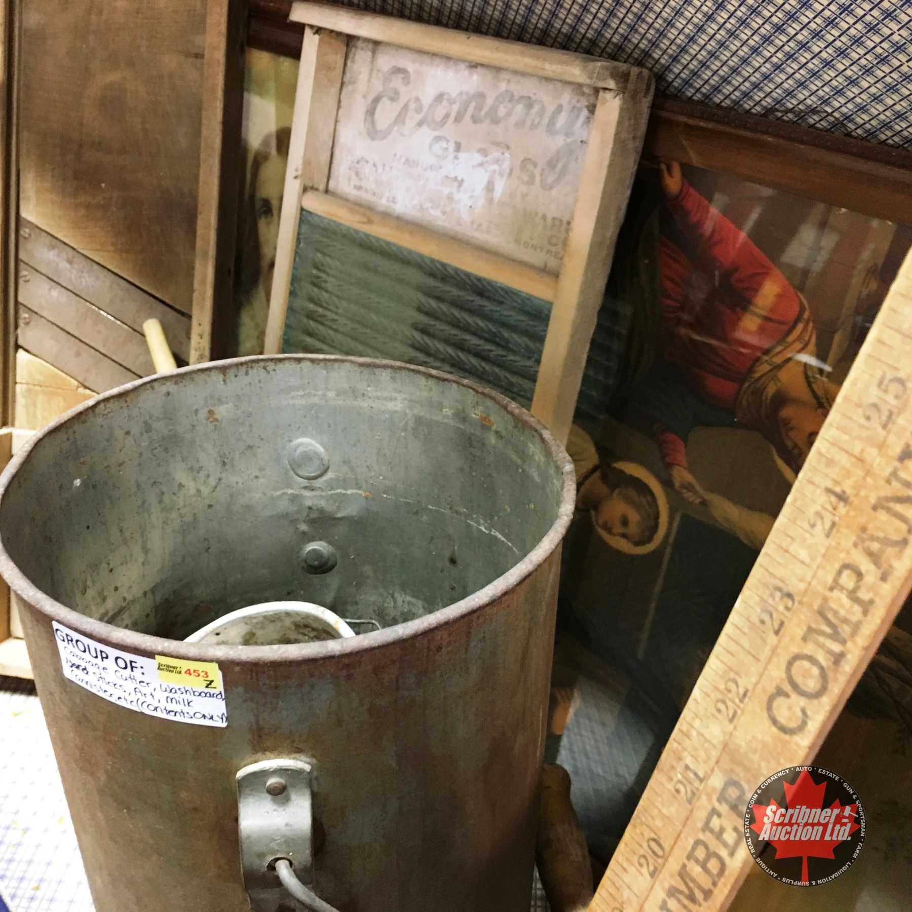 Cabbage Cutter, Washboard, Yardsticks, Religious Pictures, Milk Canister