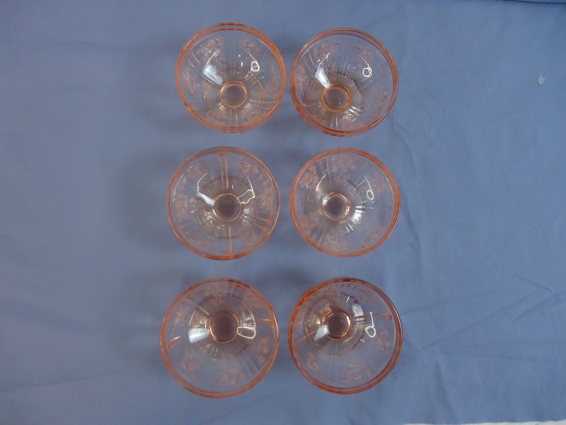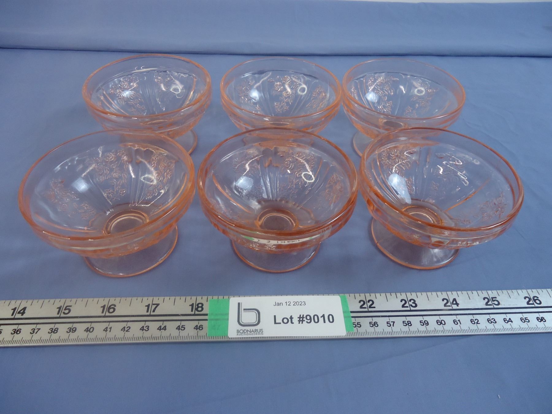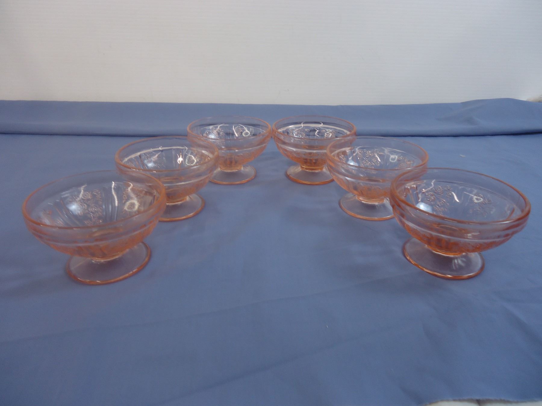 Cabbage Rose Depression - (6) Pedestal Dessert Dishes