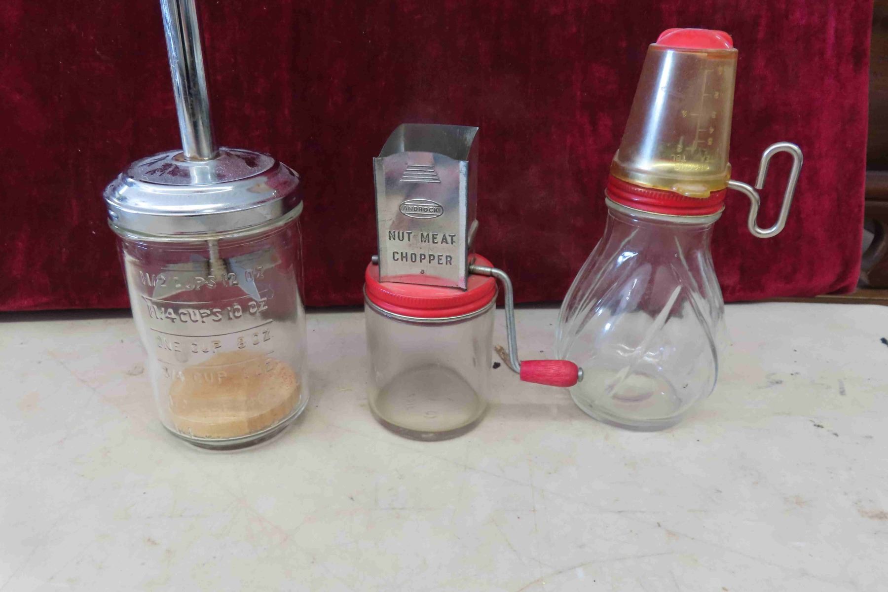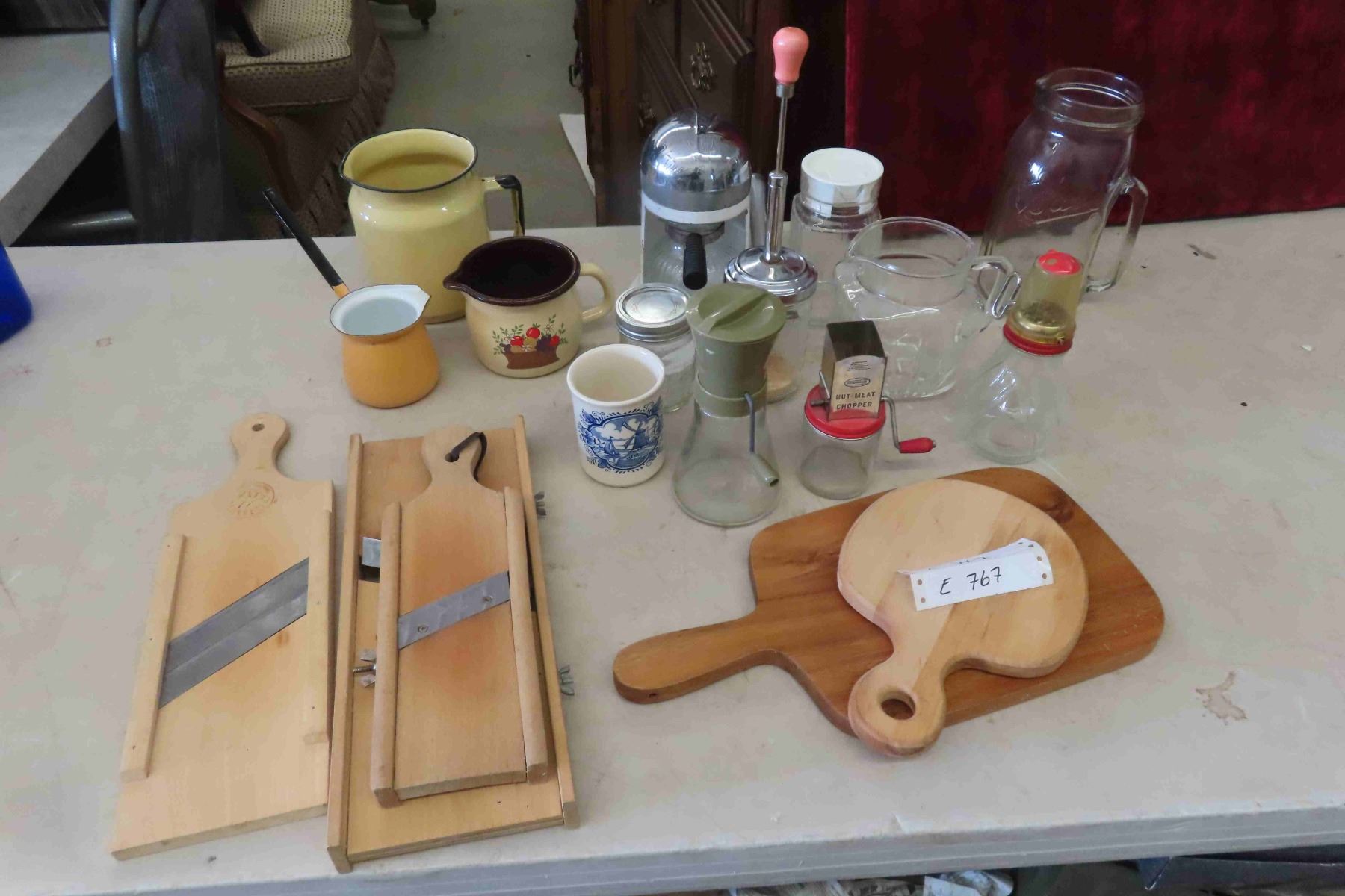 Cabbage Shredders, Cutting Boards, Nut/Meat Choppers, Bail Sealer Pitcher, Vintage Juice-o-Matic + more