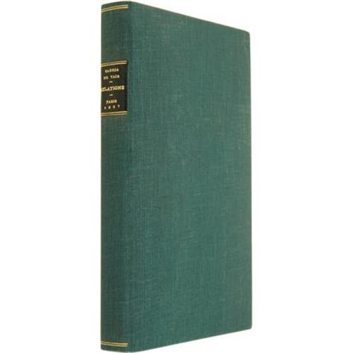 <B>Cabeca De Vaca, D'Alvar Nunez: </B></I><B><I>Relation et Naufrages d'Alvar Nunez Cabeca de Vaca</B></I></B></I><I>,</B></I> <I>Adelantade et Gouveneur du Rio de la Plata. </B></I>[in]: <B><I>Voyages, Relations et Memoires Originaux pour servir a I'histoire de la decouverte de L'Amerique,</B></I></B></I><I> par H. Ternaux-Compans. Relation et Naufrages d'Alvar Nunez Cabeca de Vaca, Adelantade et Gouveneur du Rio de la Plata. </B></I>(Paris: Arthus Bertrand, 1837). First French Edition and also the first edition of this work following the original Spanish editions of 1542-1555. Octavo (9" x 5.5"). 301 pages. The first complete edition of Cabeca de Vaca following the 1555 edition, and the first French translation of his description of the earliest recorded journey by Europeans across North America, recounting adventures with the Narvaez expedition to Florida in 1527, his capture by and escape from Indians on the Mississippi coast, and his later overland journey across Texas before finally making his way back to Spanish controlled lands in Mexico. <BR><BR>The original work was the first on Texas, and the first American travel account. A foundation work on Texas and the Southwest, in its first scholarly edition. Issued as the seventh volume of Henri Ternaux-Compans' Voyages, Relations et Memoires Originaux (1837-41). Original printed wrappers. Soiled and worn, with spine perishing and separating in places. Foxed and stained internally, but still a good copy. Housed in a cloth chemise and slipcase, with a leather lettering label on the spine. <I>From the collection of Darrel Brown.</B></I><BR><BR><B>Reference:</B></I> Servies 2037. Graff 3053. Field 227. <I>Basic Texas Books</B></I> 24e. Not in Streeter. <BR><BR><b>Shipping:</b> Books & Catalogs (<a target="_blank" href="http://www.heritageauctions.com/common/shipping.php">view shipping information</a>)