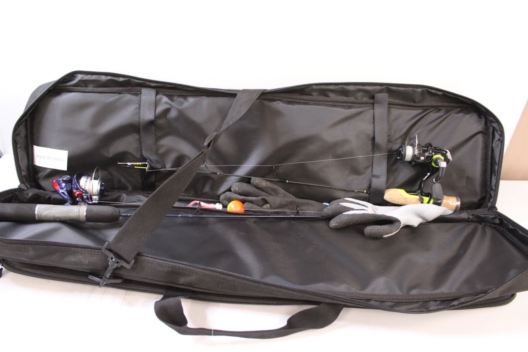 Cabela's Carrying Case & (2) Ice Fishing Rods & Gloves