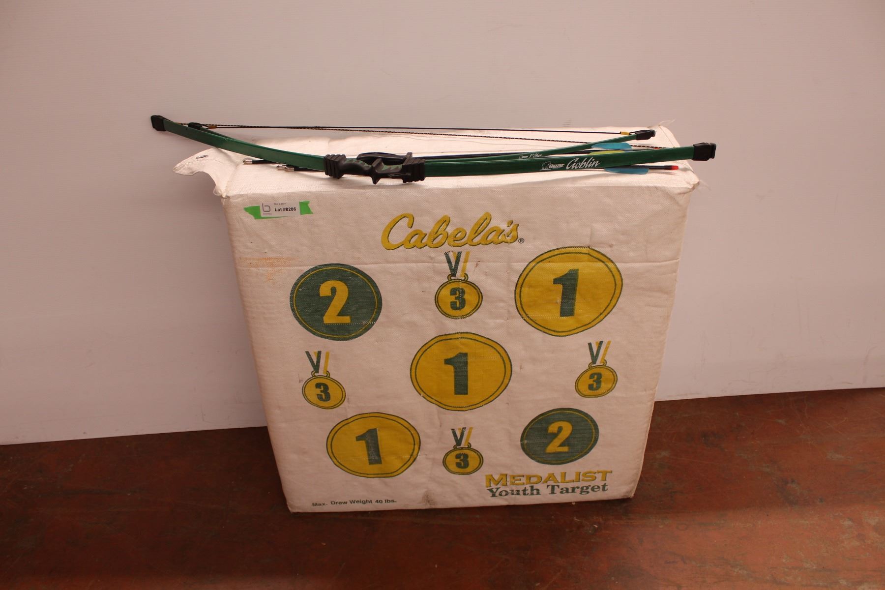 * Cabela’s foam youth target with Ambidextrous children’s bows, set of three blunt arrows
