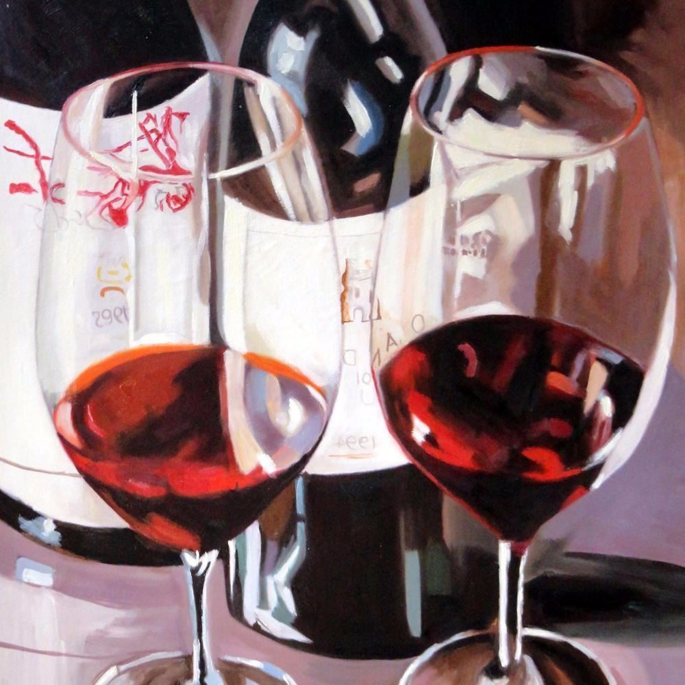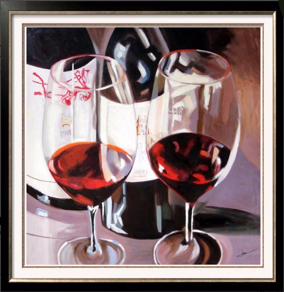Janier | Title of Art: Cabernet for Two | Medium: Hand Signed Original Acrylic on Canvas | Edition #: Original | Unframed Size: 34 x 34 | Framed Size: Offered Unframed. Framing presentation if shown is for concept only. If you need assistance with custom framing, call the experts at ArtForSale
