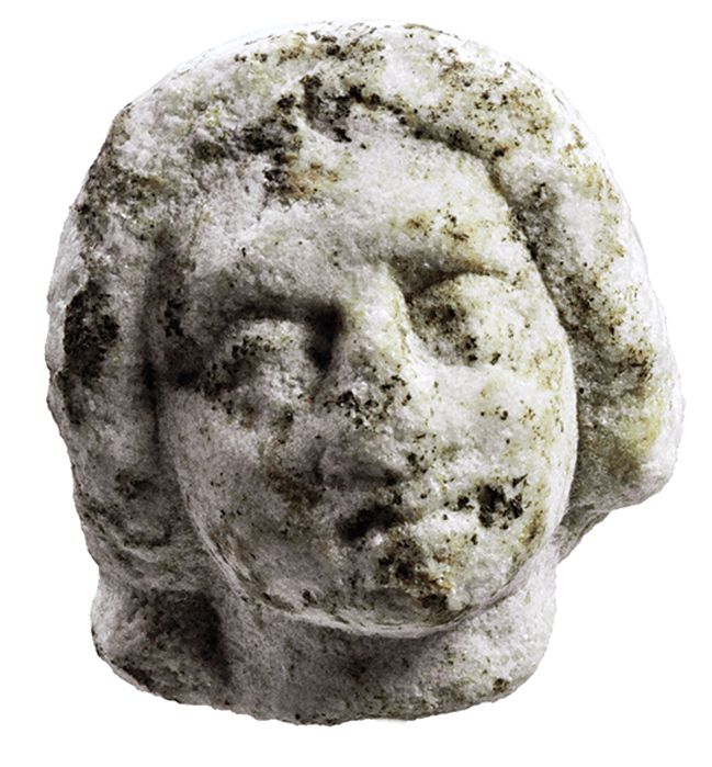 Cabeza femenina. Imperio romano (siglos I-II d.C.). Mármol blanco. Altura 8,5 cm. Colección privada norteamericana. Incluye peana.