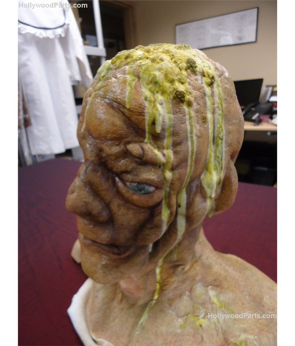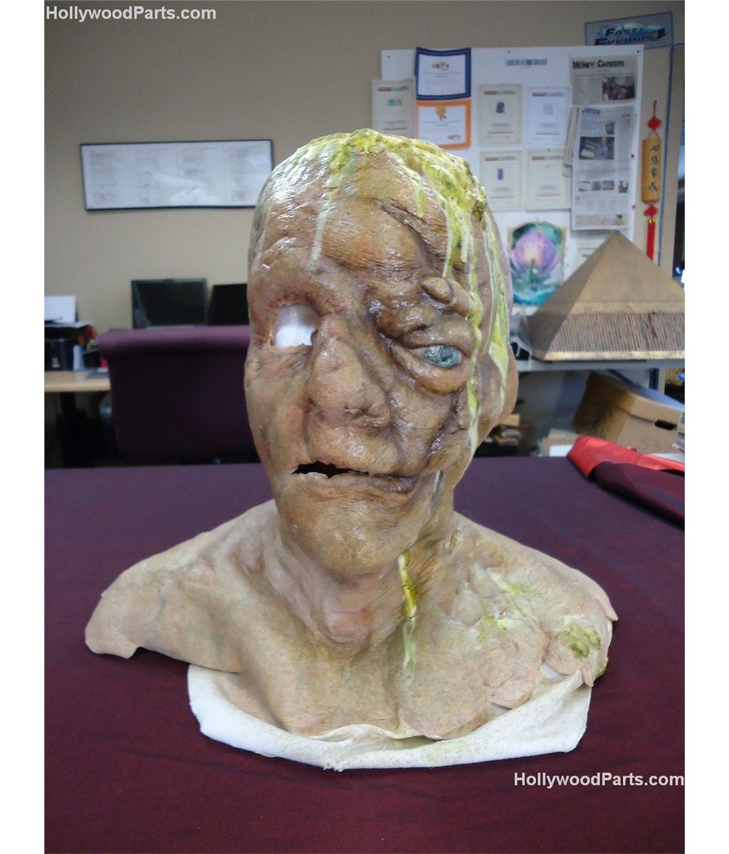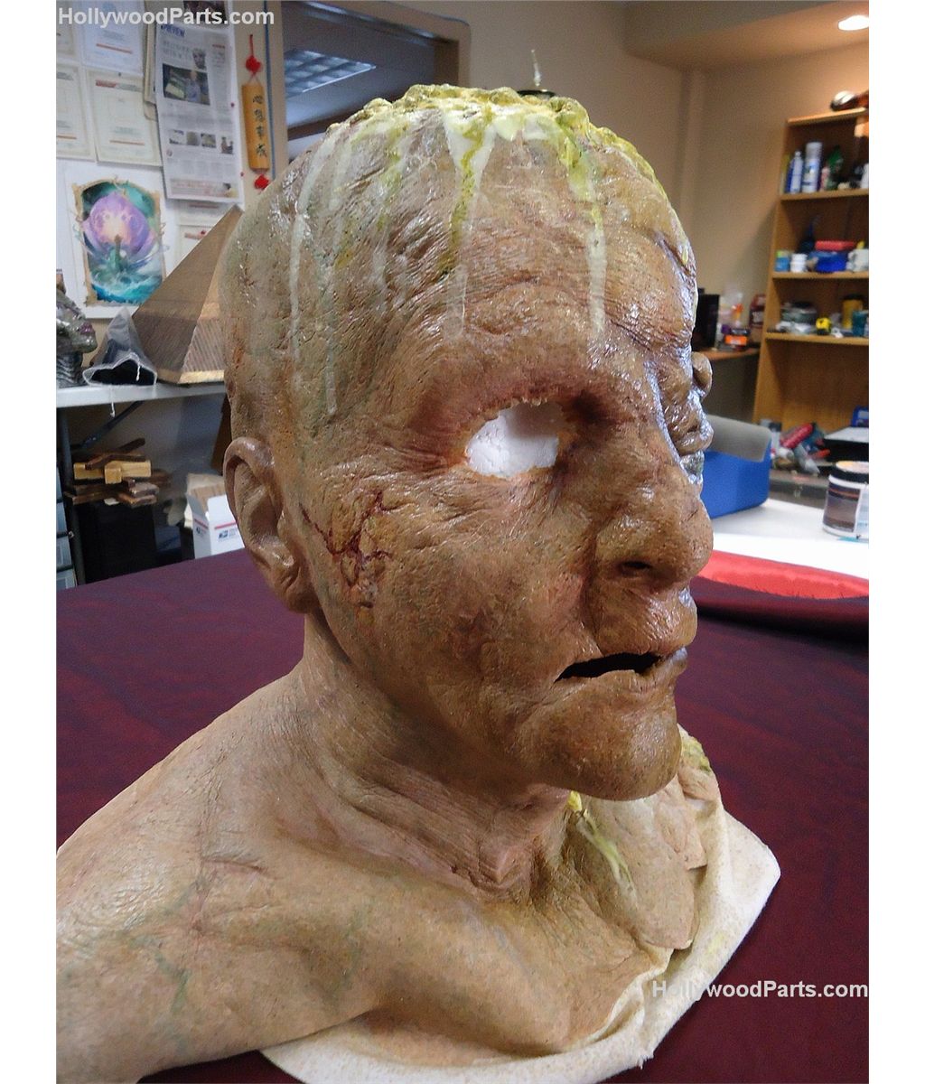 Realistic foam latex head bust mask of a face with deformities and scars. Life-like high quality make-up from Cabin in The Woods.
