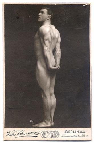 Rare physique pose of the wrestler. Vintage original period cabinet card by Wilh. Scharmann, Berlin. [3+]