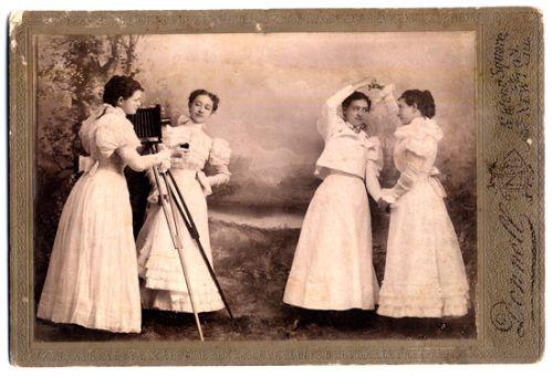 <a name=#cabinetcards></a>Lovely cabinet card by Donnell, Newton, Illinois. The women seem quite similar, possibly sisters. The mount corners are worn. [3]