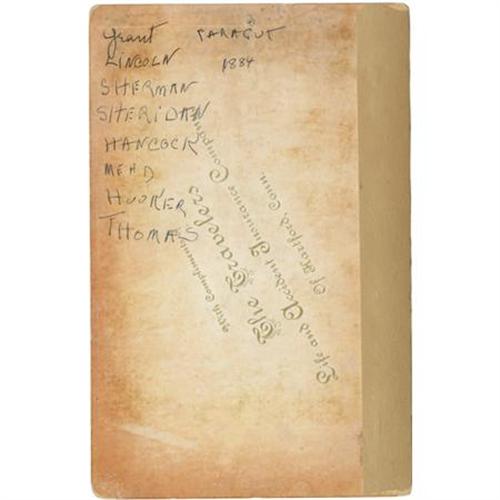 <B>Cabinet Print of Abraham Lincoln and the Union Commanders,</B></I> 4.25" x 6.5", the front marked "The Notman Photo Co. Limited, 8 Park St., Boston.", the verso marked "With Complements of The Travelers Life and Accident Insurance Company of Hartford, Conn.". With ink notations on the back and a thumb tack hole at the top. Some surface wear else very good <BR><BR><b>Shipping:</b> Flat Material, Small (<a target="_blank" href="http://www.heritageauctions.com/common/shipping.php">view shipping information</a>)
