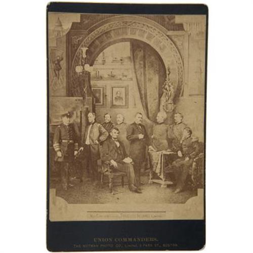 <B>Cabinet Print of Abraham Lincoln and the Union Commanders,</B></I> 4.25" x 6.5", the front marked "The Notman Photo Co. Limited, 8 Park St., Boston.", the verso marked "With Complements of The Travelers Life and Accident Insurance Company of Hartford, Conn.". Some surface wear else fine. <BR><BR><b>Shipping:</b> Flat Material, Small (<a target="_blank" href="http://www.heritageauctions.com/common/shipping.php">view shipping information</a>)
