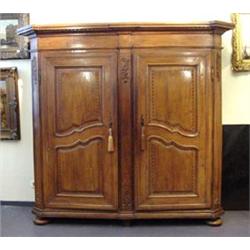 Cabinet, angled corners with rocaille carvings, Land van Herve, 18th century, dim. 200 x 68 x 180 cm. (fine patina)