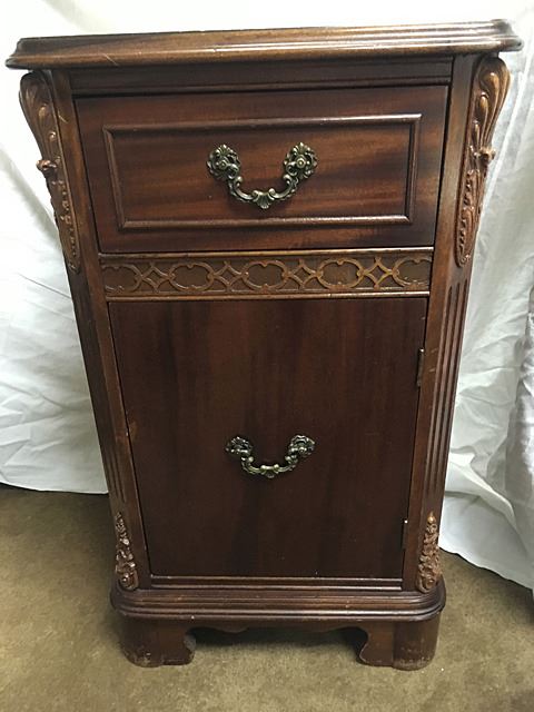 Decorative cabinet with carved sides, 1 drawer and 1 door,