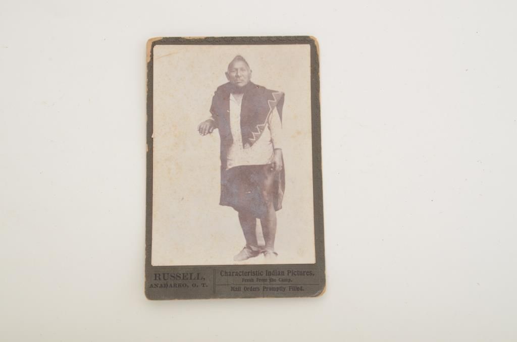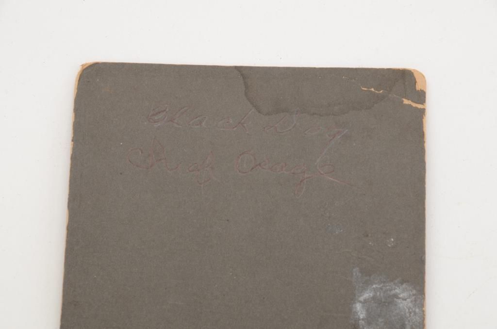 Cabinet photo by Russell of Anadarko, O.T. (Oklahoma Territory) of an American Indian, approx. 6-1/2” x 4-1/4” in overall good condition with “Black Dog, Chief Osage” written on the back in pencil. Est.:$50-$75.
