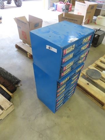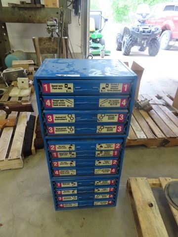 Cabinet with 12 Drawers - 7/12 Drawers Full of Screws, Nuts, Bolts, Washers, Plus