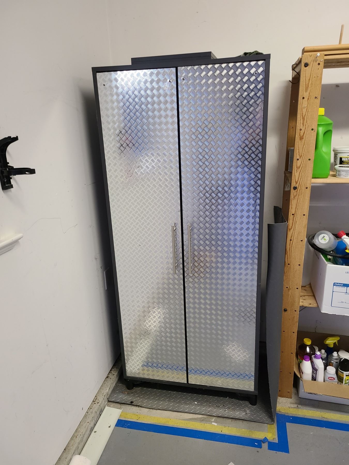 Cabinet with metal look finish. 30X19X68 pickup at 9am