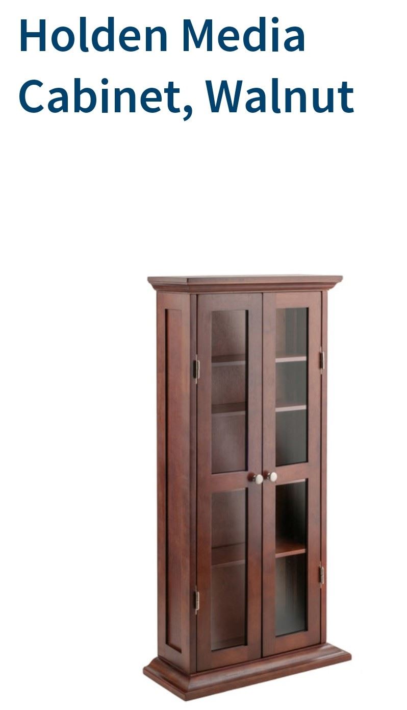 Elegant walnut media cabinet with glass doors, versatile storage, new.