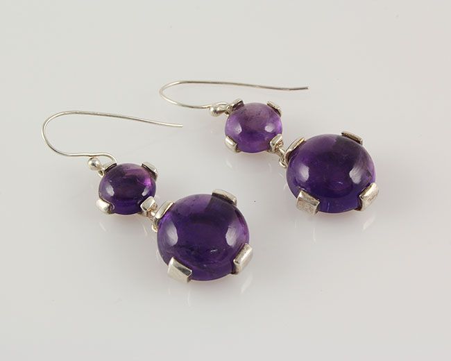 Cabochon Amethyst Stone sets in Silver Dangling Earring