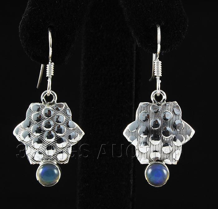 Cabochon Opal 0.54ctw Star Design 0.925 Hook Earring 3. **|**|** 1.44in. Long Genuine Opal Silver Dangling Hook Earring with a Cabochon Opal Gem Measuring 5mm Round ; MSRP: $400